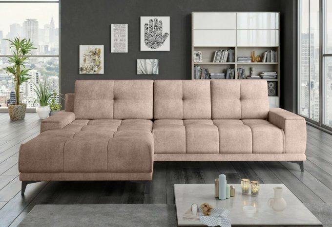 O canapea de coltar confortabila, care este un raspuns la tendintele moderne, minimaliste in designul interior. Mobilierul a fost conceput pentru camere de zi mici si mijlocii. Coltarul Daytona are sezuturi adânci, confortabile, cu o suprafață netedă. Elementul care umple și ridică spătarele joase sunt pernele spătarului largi, bombate. Setul standard include 5 perne pentru spătar și 2 perne suprarenale. Le puteți folosi în orice mod pentru a obține poziția preferată de relaxare.